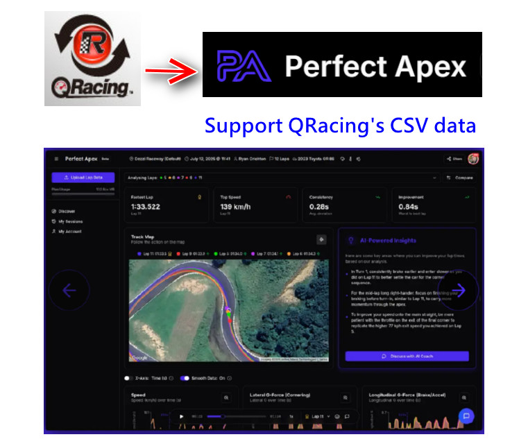 Qstarz announce new collaboration with Perfect Apex, the community hub for motorsport data. The CSV files exported from our QRacing PC software can now be uploaded to the Perfect Apex website. The Perfect Apex website offers free and paid edition, with the paid version featuring AI-powered analysis and suggestions. The Qstarz lap timer users can have more flexibility and options on analyze their race data or share with friends. |